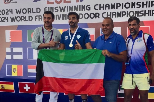 تمكّن بطل الكويت في سباحة الزعانف منصور المنصور من تحطيم الرقم العالمي بفئة «ماسترز» وتحقيق الميدالية الذهبية بفئة «50AP» مسجلاً 16:06 ثانية ضمن منافسات بطولة