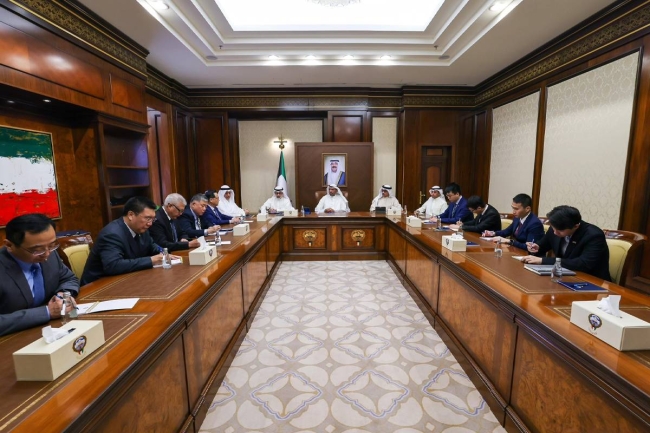 اجتمع وزير الخارجية عبدالله اليحيا اليوم، مع سفير الصين لدى البلاد تشانغ جيانوي بحضور رئيس وأعضاء الوفد الحكومي الصيني المعني باستكمال المشاورات المتعلقة بالمشاريع التنموية