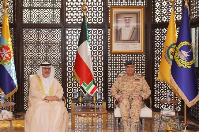 بحث رئيس الأركان العامة للجيش الكويتي الفريق الركن طيار بندر المزين اليوم الأحد مع سفير دولة الإمارات لدى البلاد د. مطر النيادي أهم المواضيع ذات