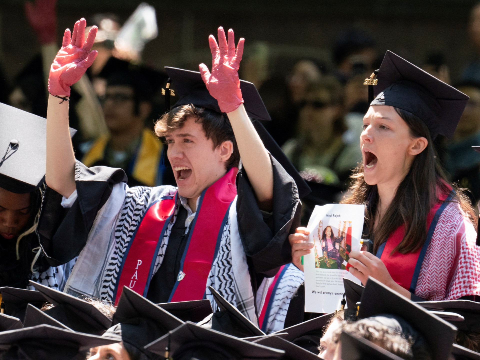 انسحب العشرات من الخريجين من حفل بجامعة ييل الأميركية أمس الاثنين، احتجاجا على العدوان الإسرائيلي على غزة والعلاقات المالية بين الجامعة وشركات تصنيع أسلحة، فضلا
