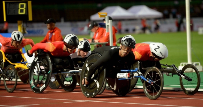 فاز لاعب منتخبنا الوطني لألعاب القوى للمعاقين فيصل الراجحي بالميدالية الذهبية والمركز الأول في سباق جري 5000 متر على الكراسي المتحركة (فئة T54) في منافسات