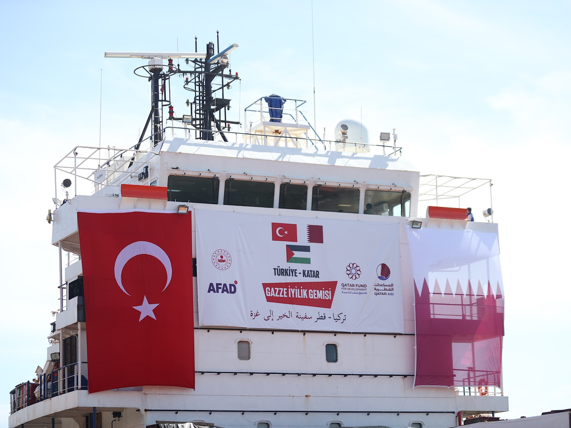 انطلقت من مدينة مرسين في تركيا سفينة قطرية تركية مشتركة تحمل 1900 طن من المساعدات الغذائية لدعم الفلسطينيين في قطاع غزة. وتأتي هذه السفينة، بحسب