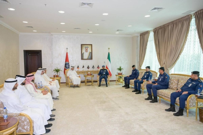 استقبل رئيس قوة الإطفاء العام بالتكليف، اللواء خالد فهد، اليوم، رئيس مركز مجلس التعاون لإدارة حالات الطوارئ العميد د. راشد المري والوفد المرافق له في