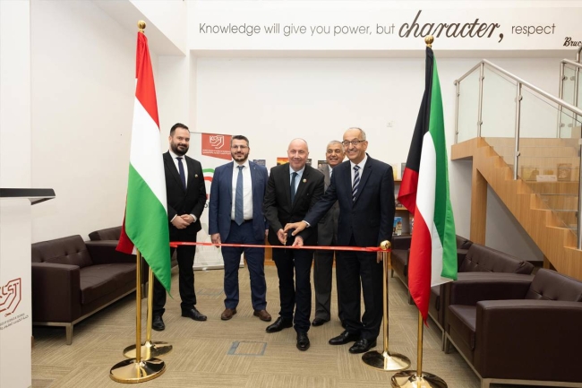 استقبلت كلية الكويت للعلوم والتكنولوجيا، سفير هنغاريا- المجر لدى الكويت أندراس سيزابو، ووفداً من السفارة، لافتتاح ركن للكتب المهداة من سفارة هنغاريا- المجر في مكتبة