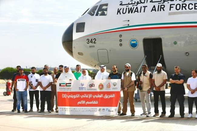 أعلنت الجمعية الكويتية للاغاثة مغادرة الفريق الإغاثي الطبي الثاني على متن طائرة عسكرية من قاعدة عبدالله المبارك الجوية متجهة إلى مطار العريش الدولي بمصر ومنه