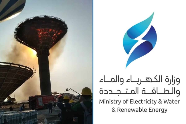 أكدت وزارة الكهرباء والماء والطاقة المتجددة أن برج المياه قيد الإنشاء الذي اشتعلت فيه النيران ليس ضمن مشاريع المنشآت المائية التابعة للوزارة. وقالت أن البرج