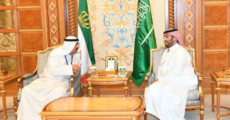استقبل سمو الأمير الشيخ مشعل الأحمد، مساء اليوم، الأمير محمد بن سلمان بن عبدالعزيز آل سعود ولي العهد رئيس مجلس الوزراء في المملكة العربية السعودية