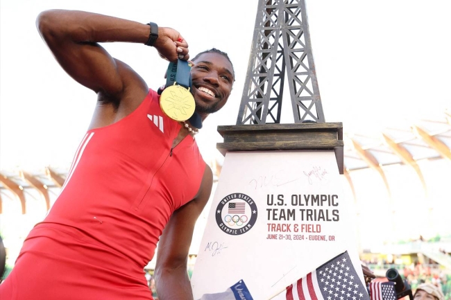 ضمن العداء الأميركي نواه لايلز، المتوج بثلاث ذهبيات في بطولة العالم في بودابست العام الماضي، مشاركته في أولمبياد باريس بفوزه بسباق 100 متر، معادلا رقمه