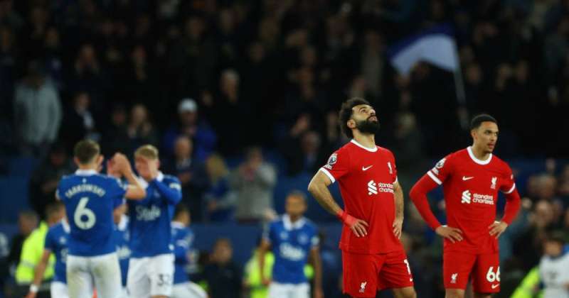 مُنيت آمال ليفربول بإحراز لقب الدوري الانكليزي لكرة القدم بنكسة كبيرة بعد سقوطه على يد مضيفه ايفرتون 0-2 في دربي ميرسيسايد الاربعاء في المرحلة التاسعة