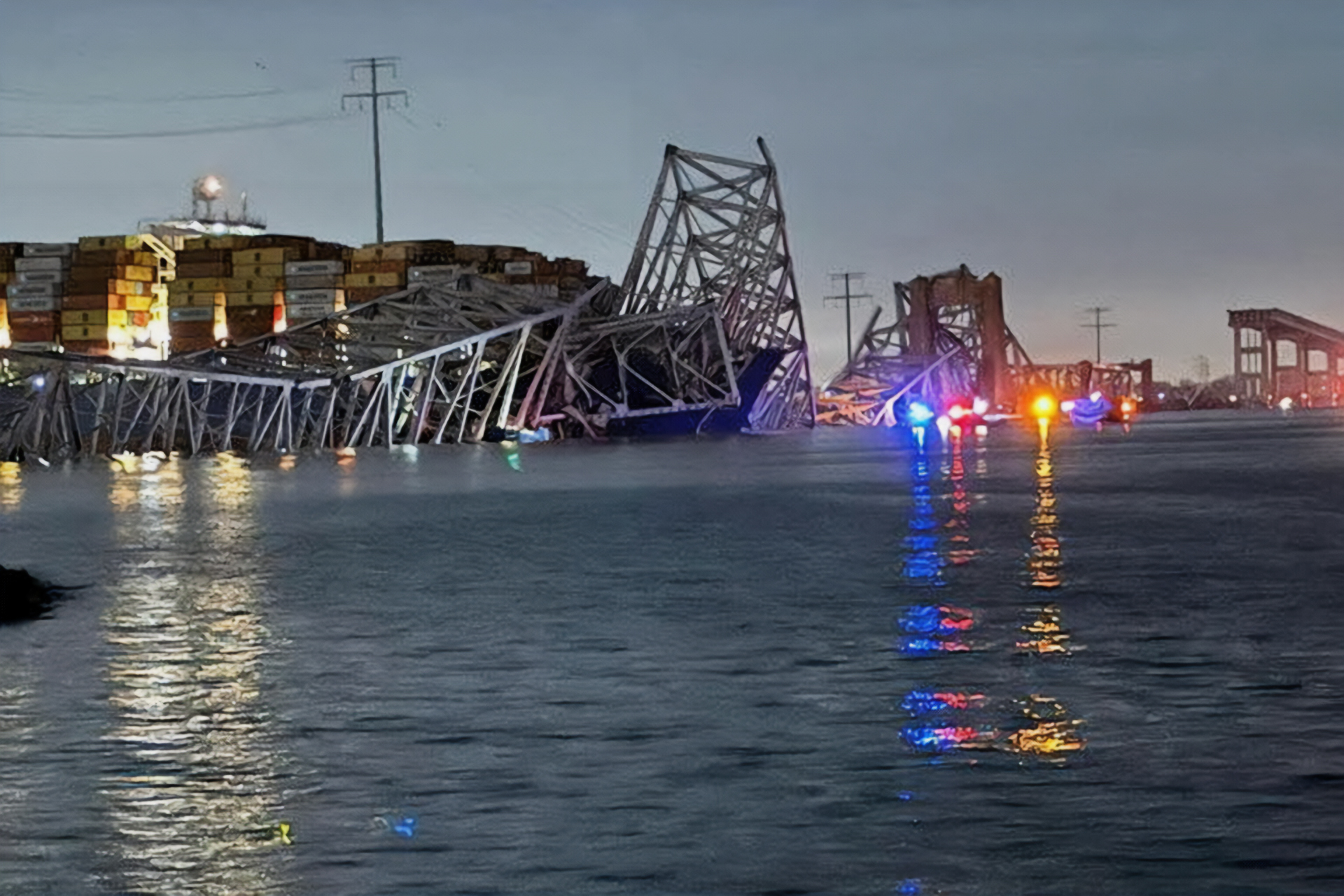 أظهرت مقاطع فيديو -نشرت على منصات التواصل الاجتماعي- انهيار أجزاء من جسر ضخم بمدينة بالتيمور بولاية ميريلاند على الساحل الشرقي لأميركا، في ساعة مبكرة اليوم