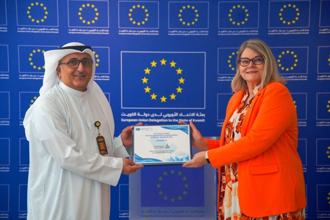 قدّمت سفيرة الاتحاد الأوروبي لدى البلاد، آن كويستنين، أمس، جائزة «شايو 2023» لتعزيز حقوق الإنسان في منطقة الخليج الى الجمعية الكويتية لحقوق الإنسان. وفي كلمة