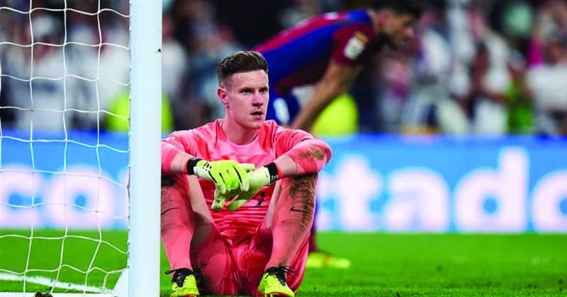 حرم هدف جناح ريال مدريد، البرازيلي فينيسيوس جونيور في الشوط الأول من مباراة الـ «كلاسيكو»، حارس مرمى برشلونة، الألماني مارك أندريه- تير شتيغن من تحقيق