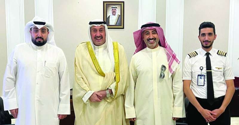 استقبل المستشار في الديوان الأميري الشيخ فيصل الحمود رئيس جمعية الطيارين ومهندسي الطيران الكويتية المهندس عبدالعزيز الأزمع ونائب رئيس الجمعية الكابتن مهند العيار وأمين السر