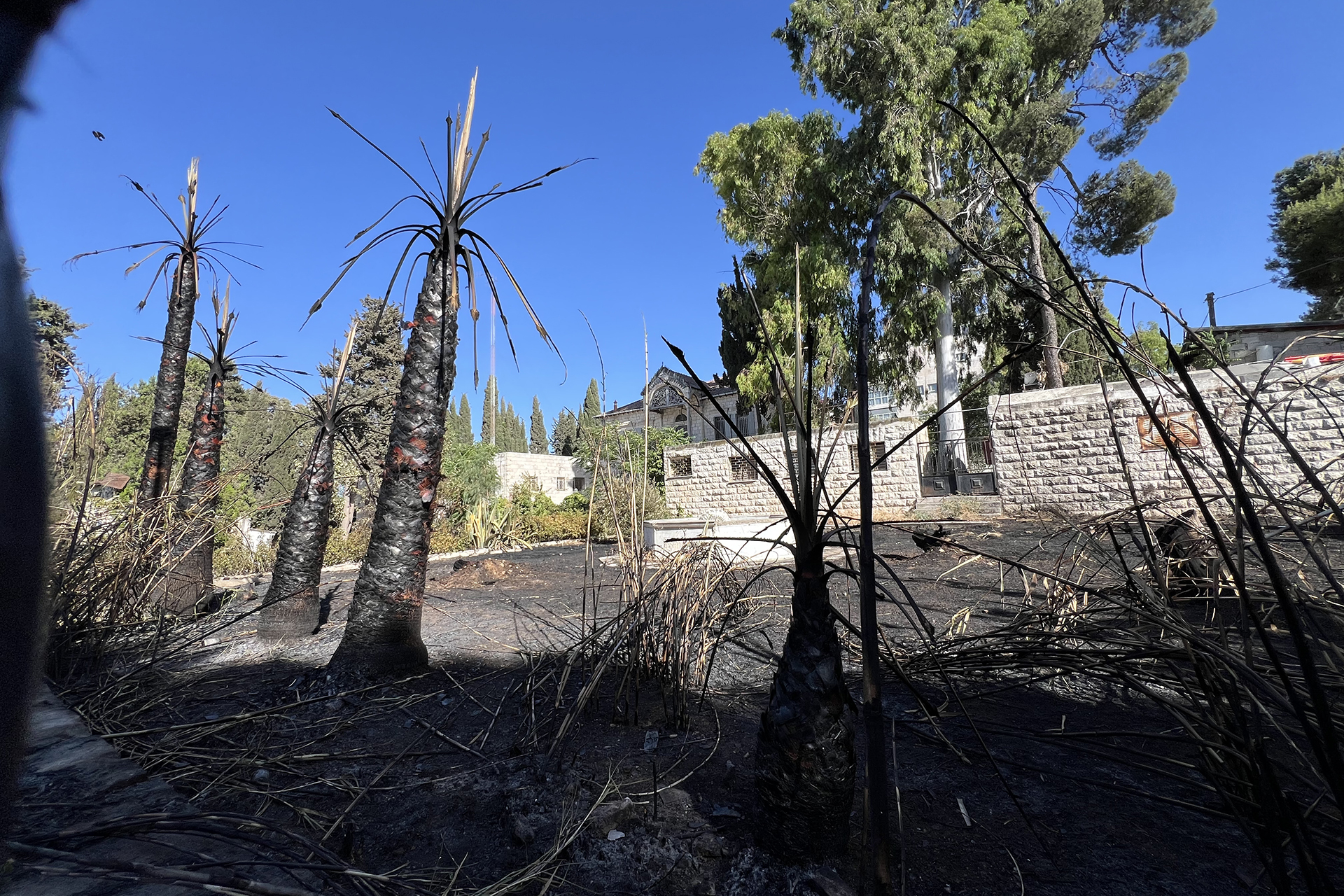 القدس المحتلة- أتى حريق على جزء من حديقة بيت الشرق في مدينة القدس المحتلة، ما تسبب بإتلاف عدد من أشجار النخيل المعمرة وأشجار اللوزيات وبعض