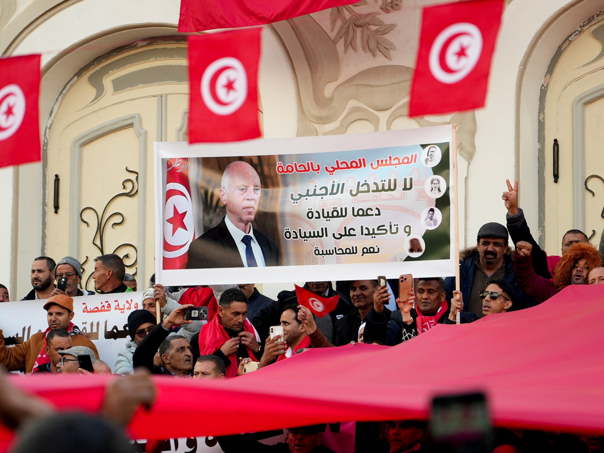 خرج أنصار الرئيس التونسي قيس سعيد، اليوم الأربعاء، في مظاهرة وسط العاصمة تونس، للتعبير عن دعمهم له، في وقت تواصل فيه المعارضة تنظيم احتجاجات مناهضة